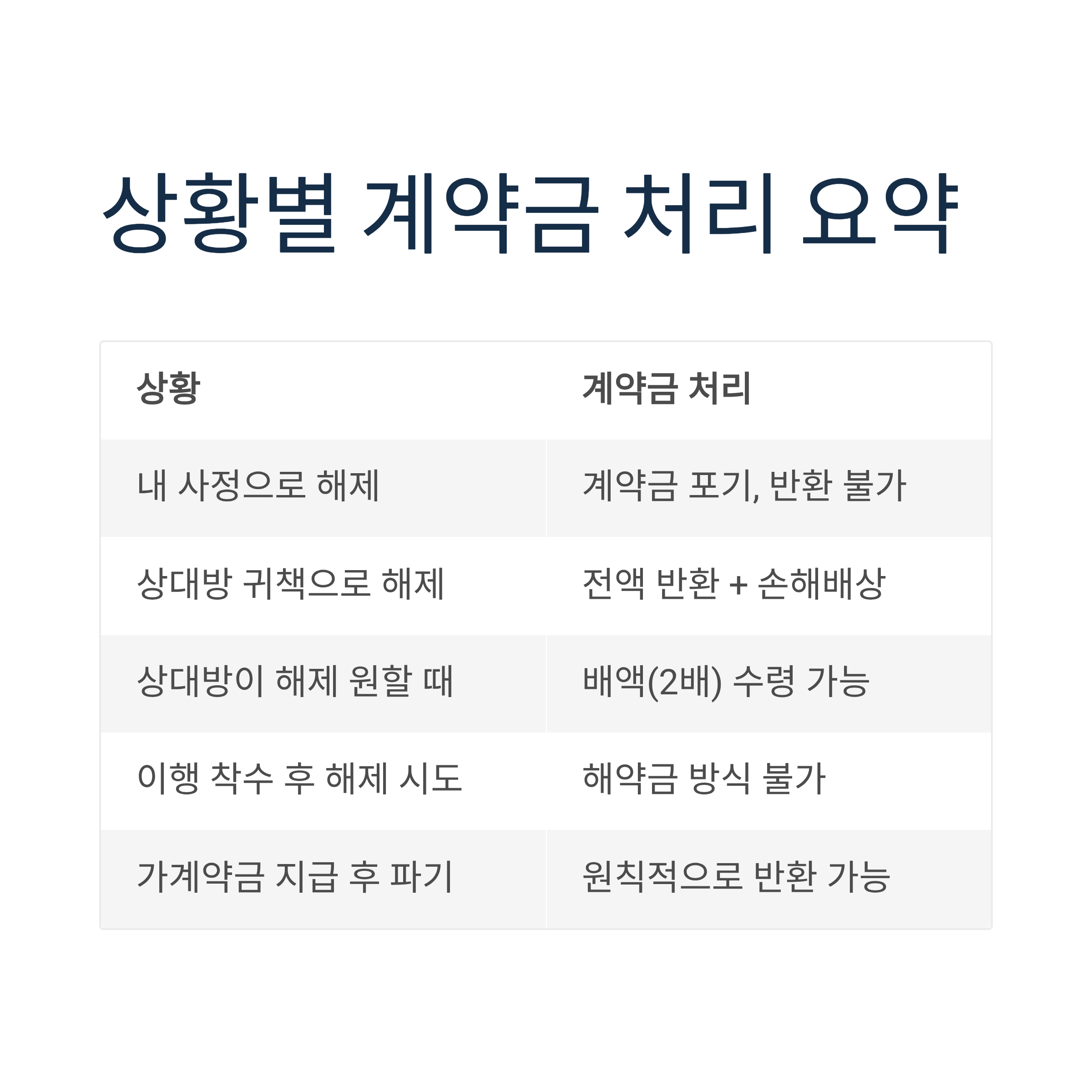 | 내 사정으로 해제 (해약금) | 계약금 포기, 반환 불가 |