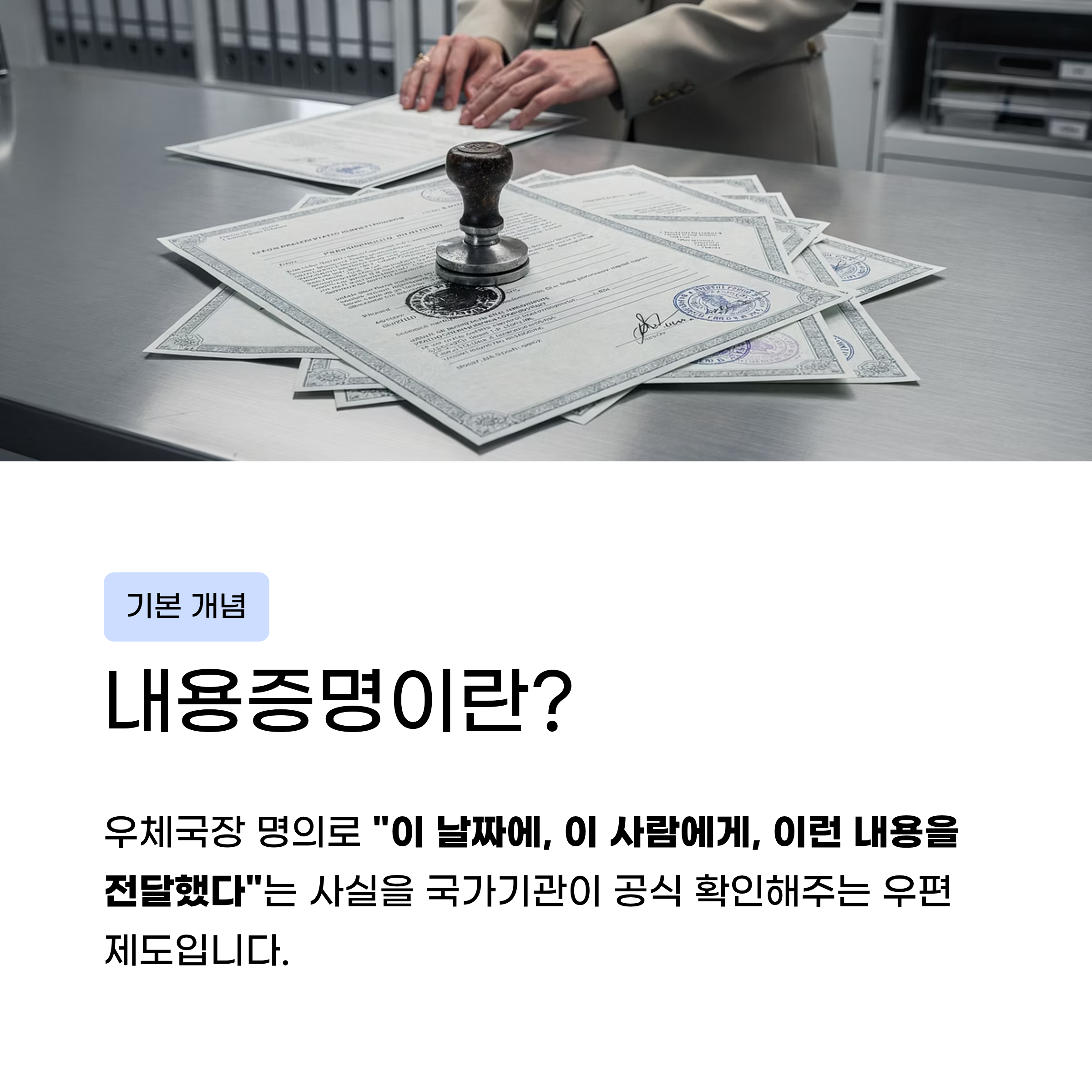 쉽게 말하면 "나는 이 날짜에, 이 사람에게, 이런 내용을 전달했다"는 사실을 국가기관(우체국)이 공식 확인해주는 우편이다.