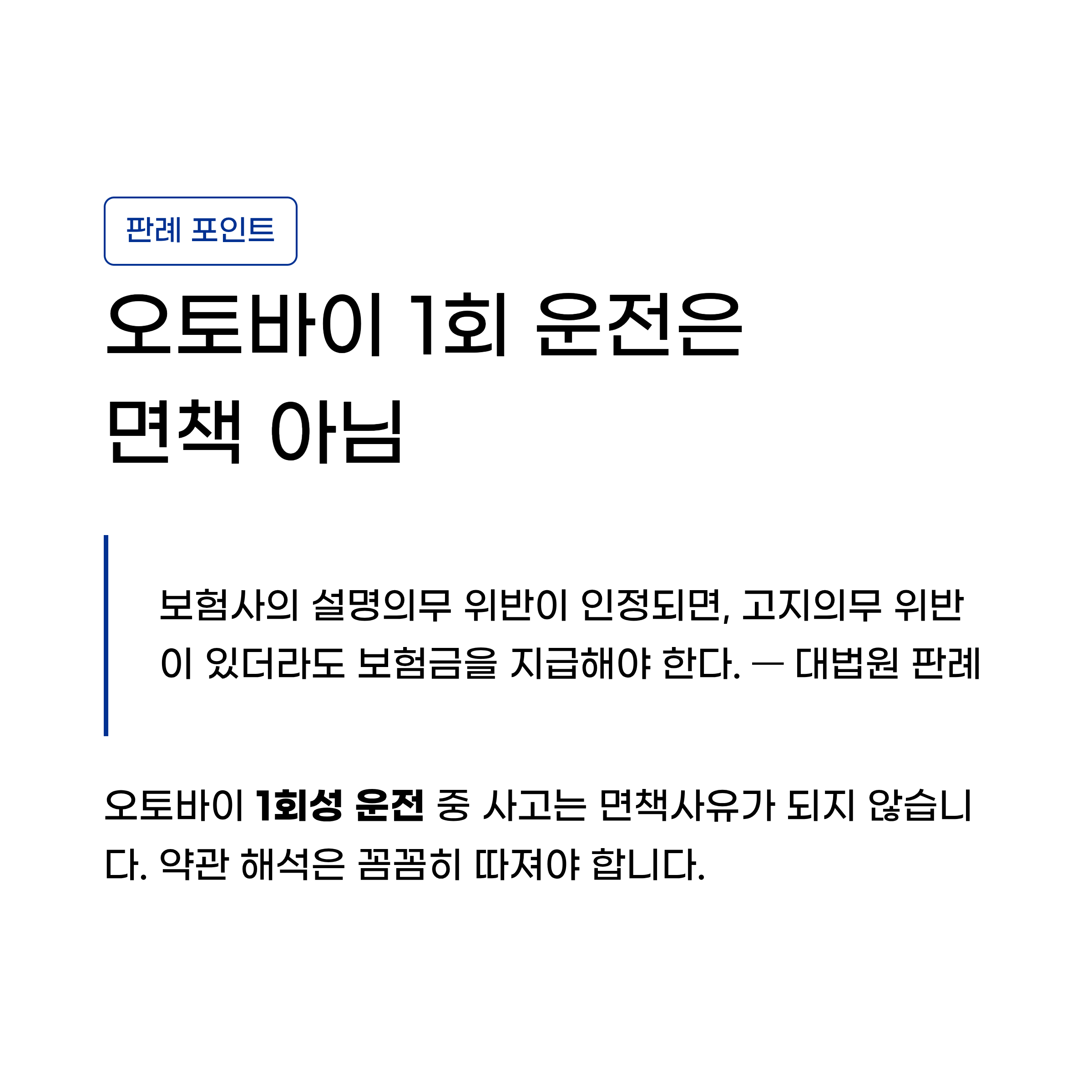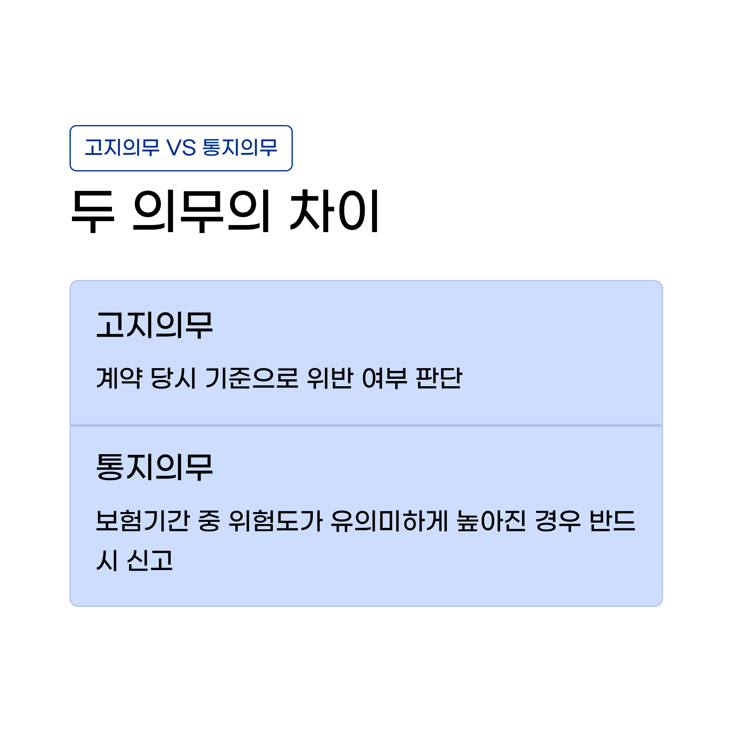 다만 고지의무와 통지의무는 구분됩니다. 고지의무는 계약 당시를 기준으로, 통지의무는 보험계약 성립 후 보험기간 중의 시점을 기준으로 위반 여부를 판단합니다. 단순히 직업이 달라졌다고 자동으로 위반이 되는 건 아니지만, 위험도가 유의미하게 높아진 경우에는 반드시 보험사에 통지해야 합니다.