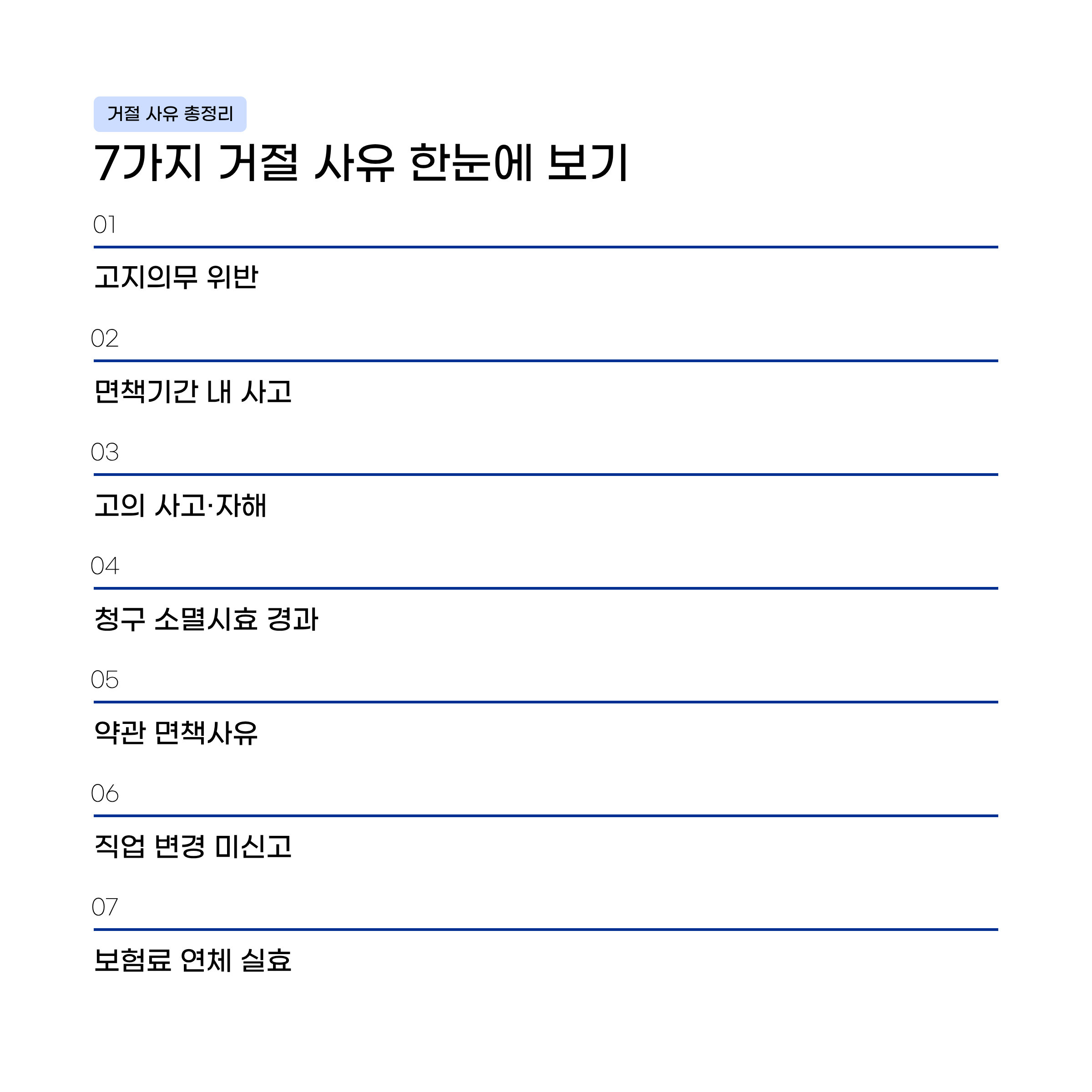 보험금 지급 거절의 7가지 이유를 알고 있으면 사전에 방지하거나 이의신청으로 뒤집을 수 있습니다.