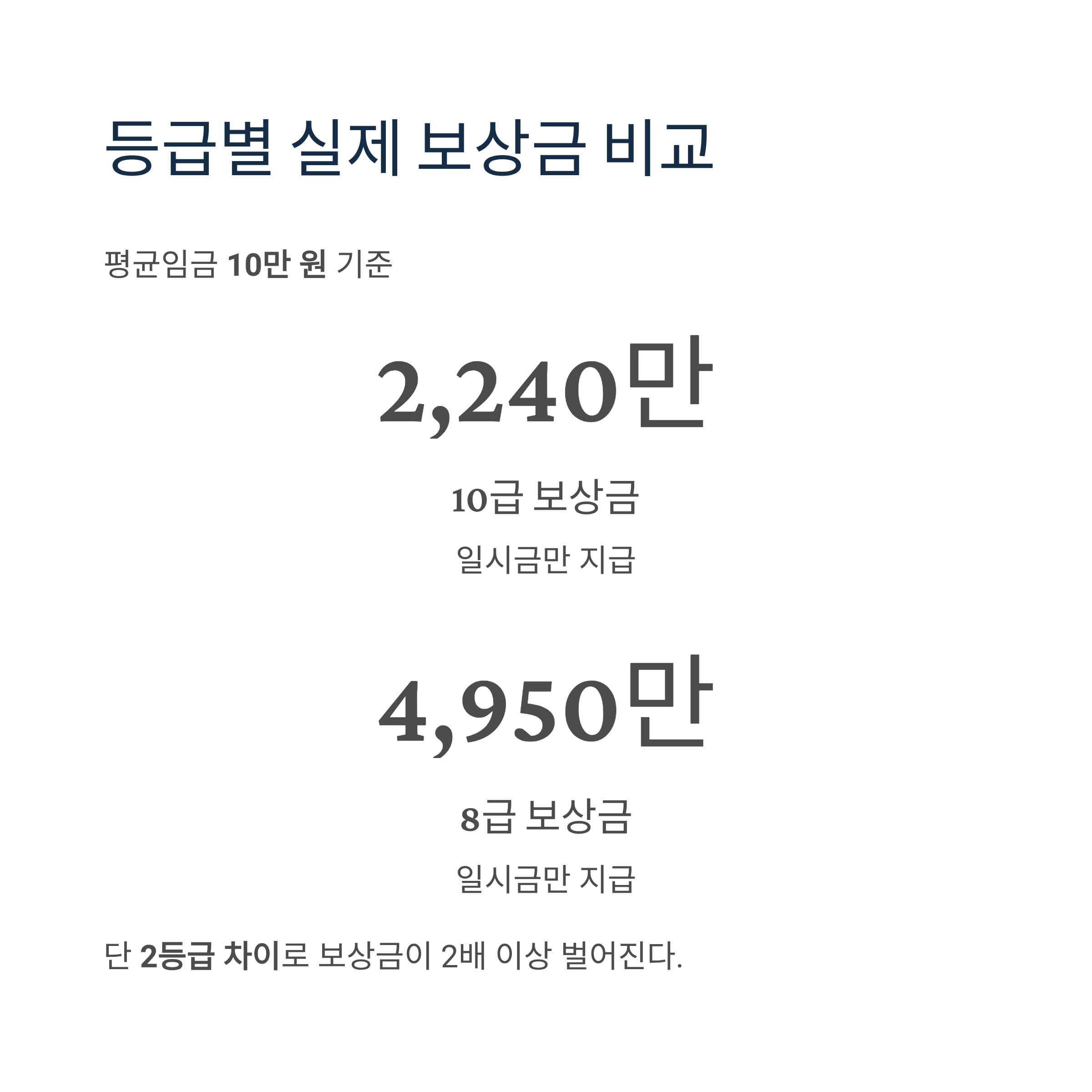 • 8급과 10급의 차이: 약 2,710만 원 (2등급 차이)