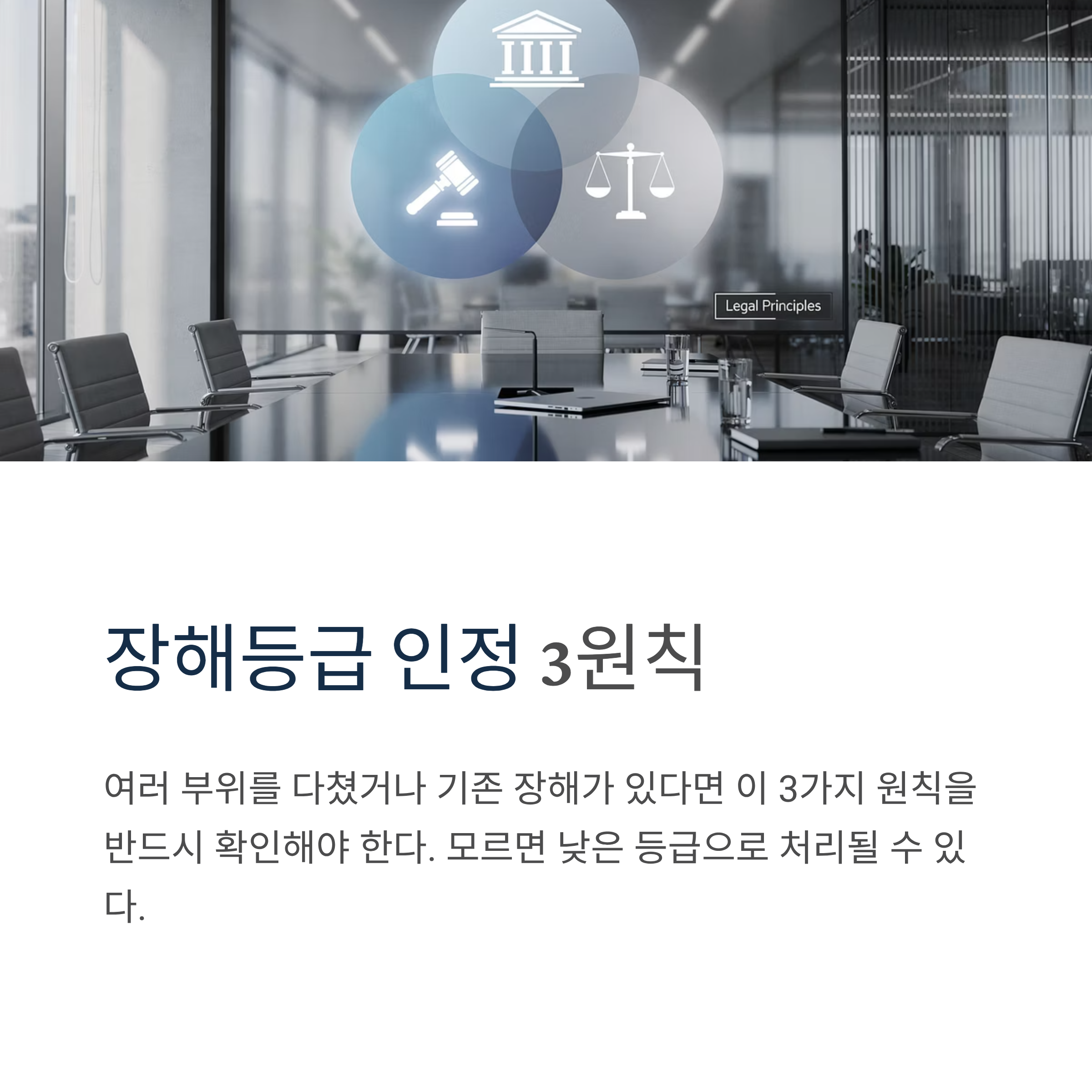 단순히 하나의 부위만 다친 게 아니라 여러 부위를 다쳤거나 기존 장해가 있는 경우, 3가지 원칙에 따라 등급이 달라진다. 이것을 모르면 낮은 등급으로 처리되어 수천만 원을 놓칠 수 있다.