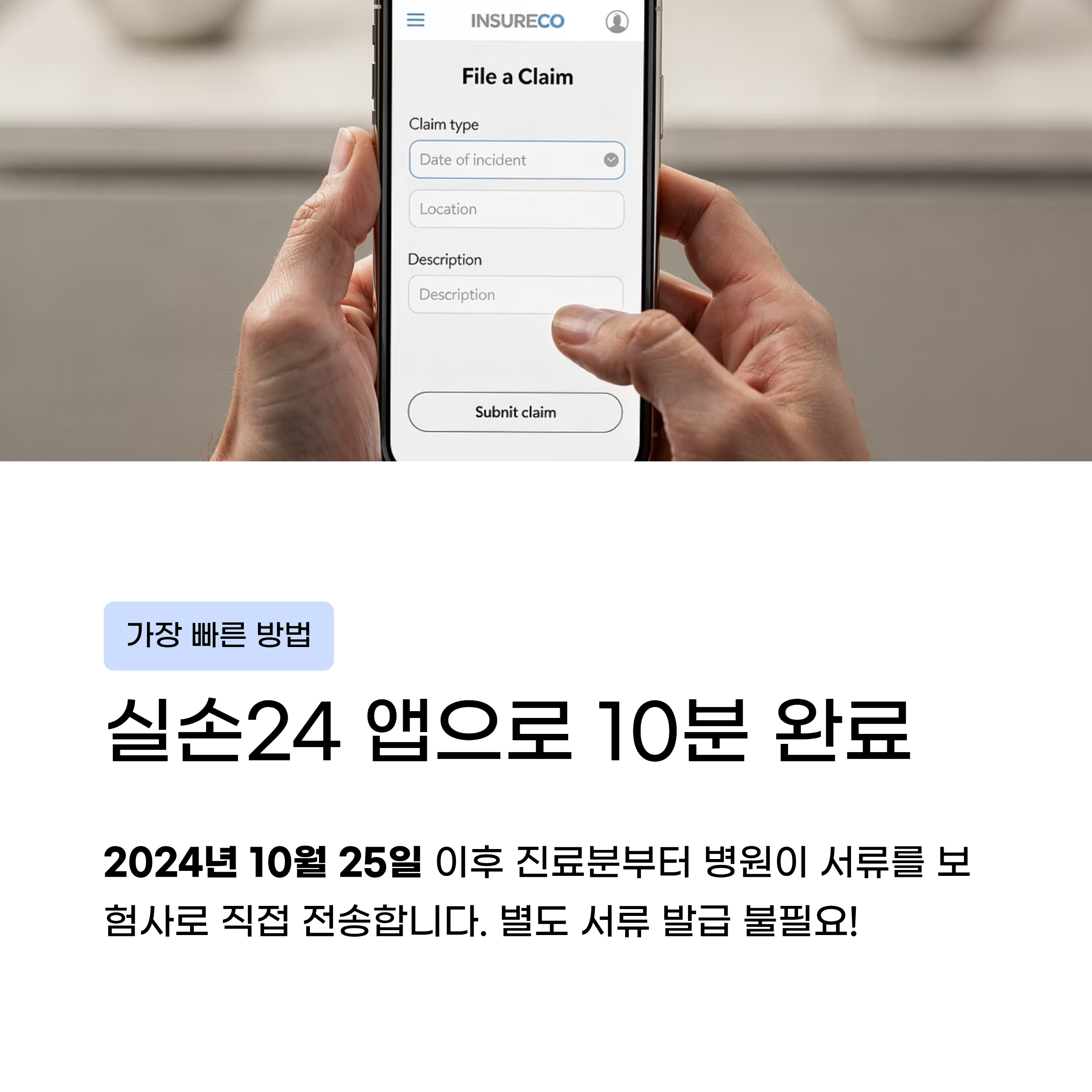 병원이 보험사로 진료 서류를 직접 전송한다. 서류 발급 불필요.