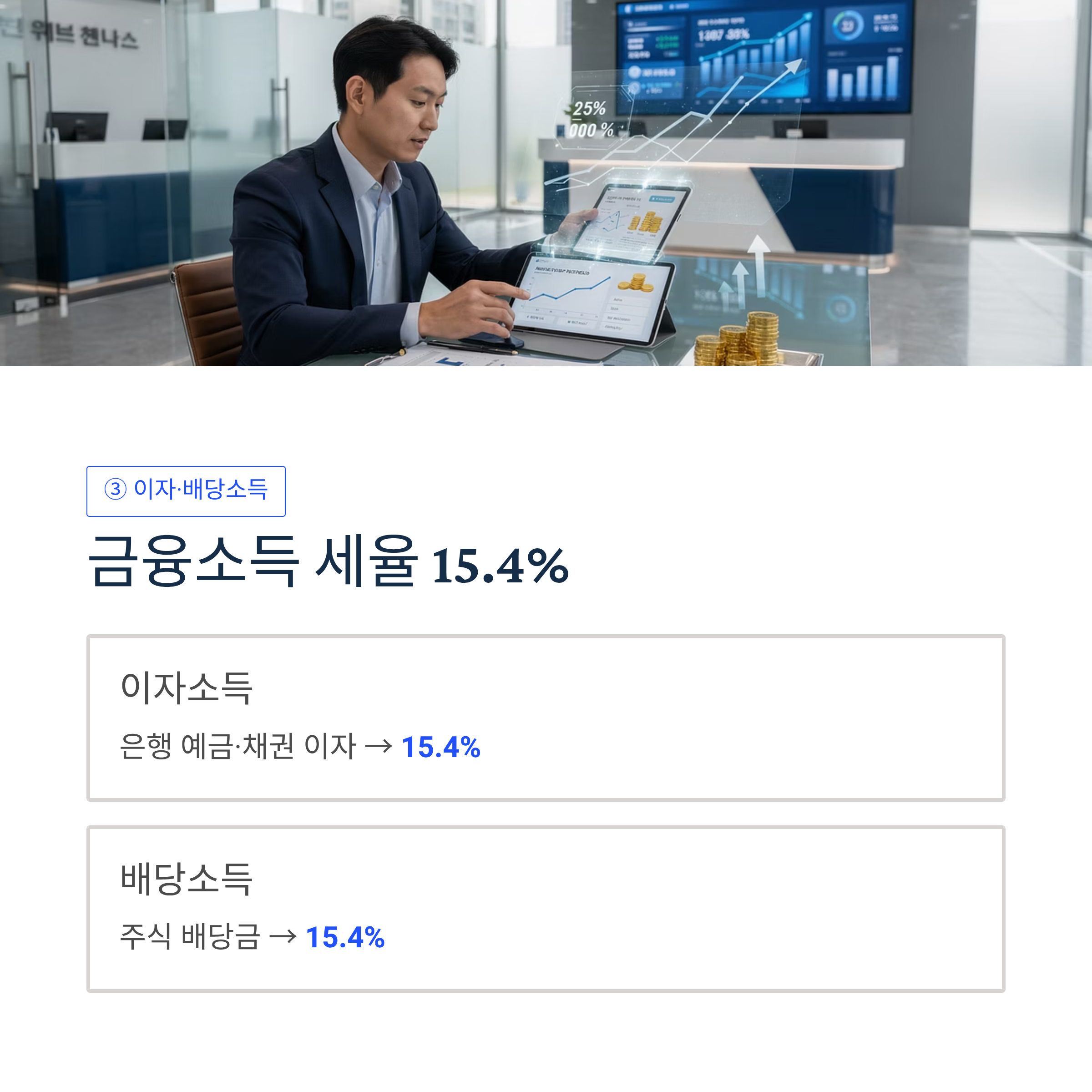 | 이자·배당소득 | 15.4% | 국세 14% + 지방세 1.4% |