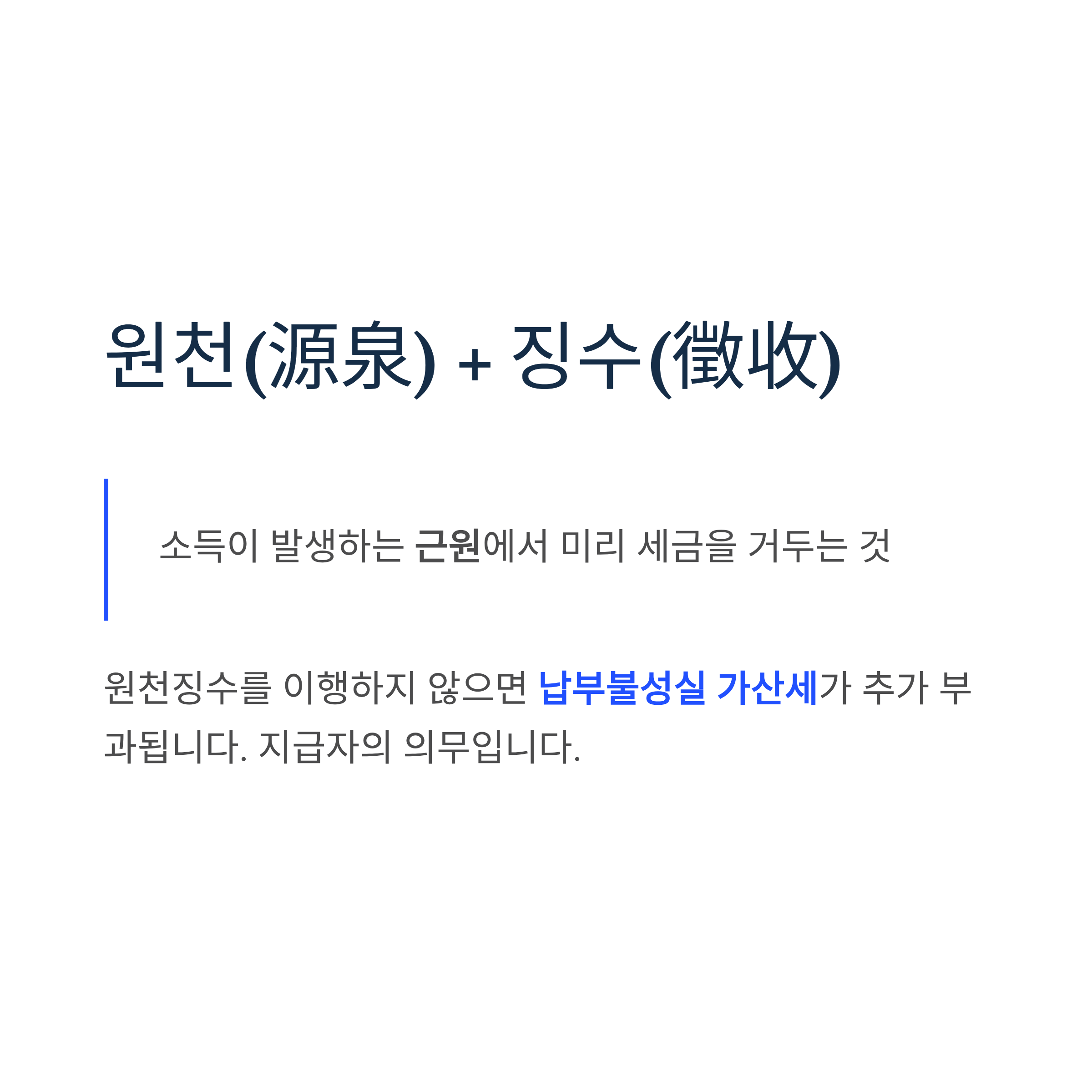 원천(源泉) = 소득이 발생하는 근원 | 징수(徵收) = 거두어들임