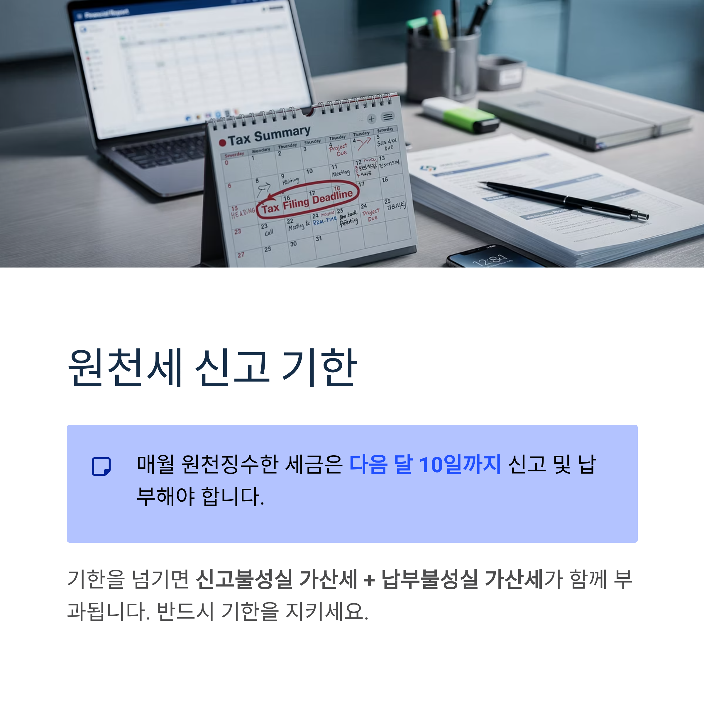 - 📅신고·납부 기한 — 지급일이 속하는 달의 다음 달 10일까지