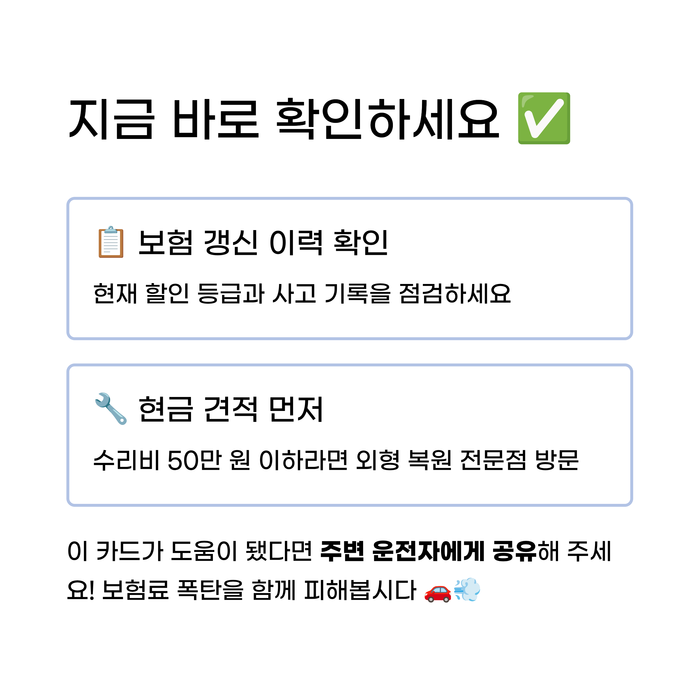 지금 바로 자신의 보험 갱신 이력을 확인해 보세요. 수리비 견적이 50만 원 이하라면 보험사를 부르기 전에 가까운 외형 복원 전문점에서 현금 견적을 먼저 받아보시는 것을 강력히 추천드립니다.