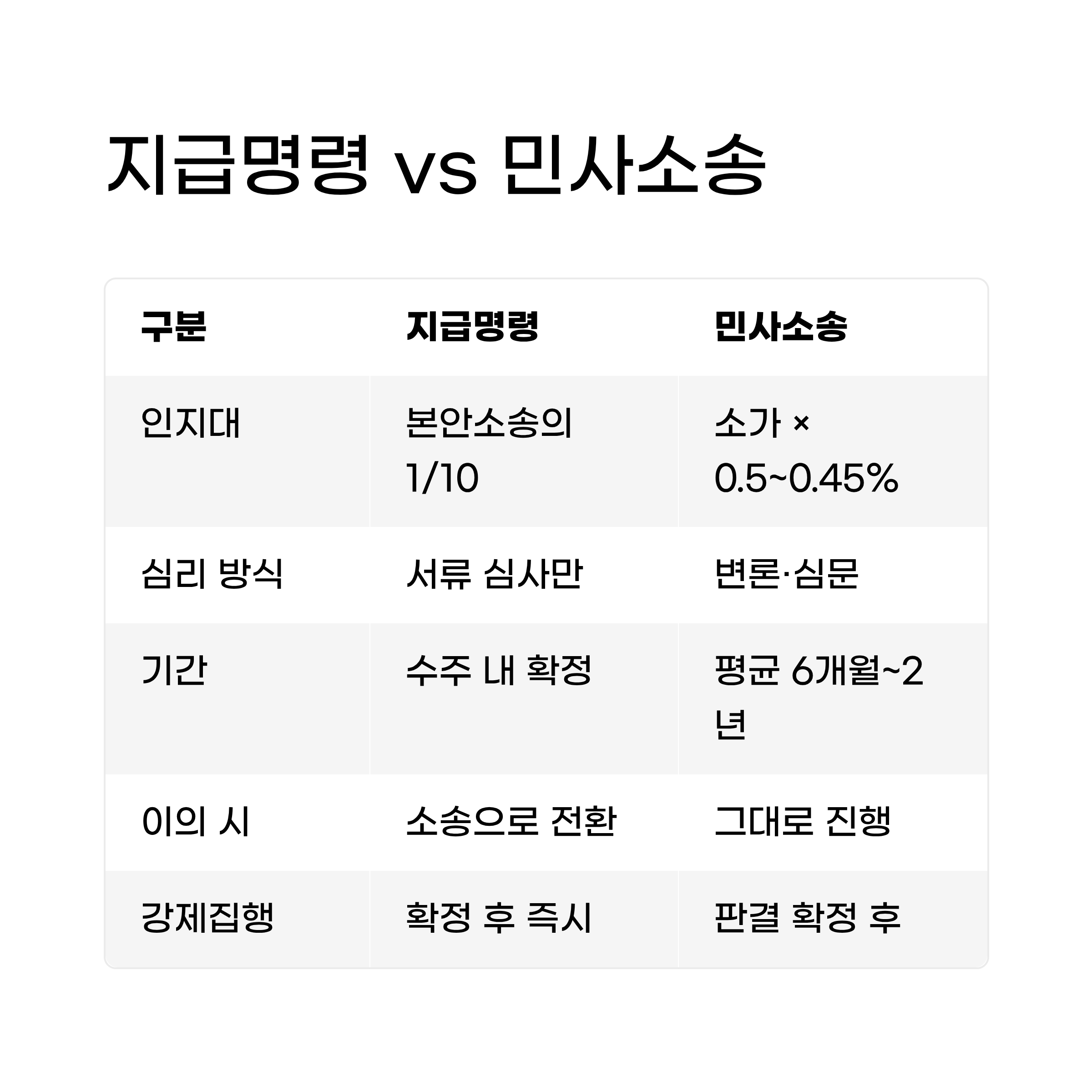 | 구분 | 지급명령 | 민사소송 |