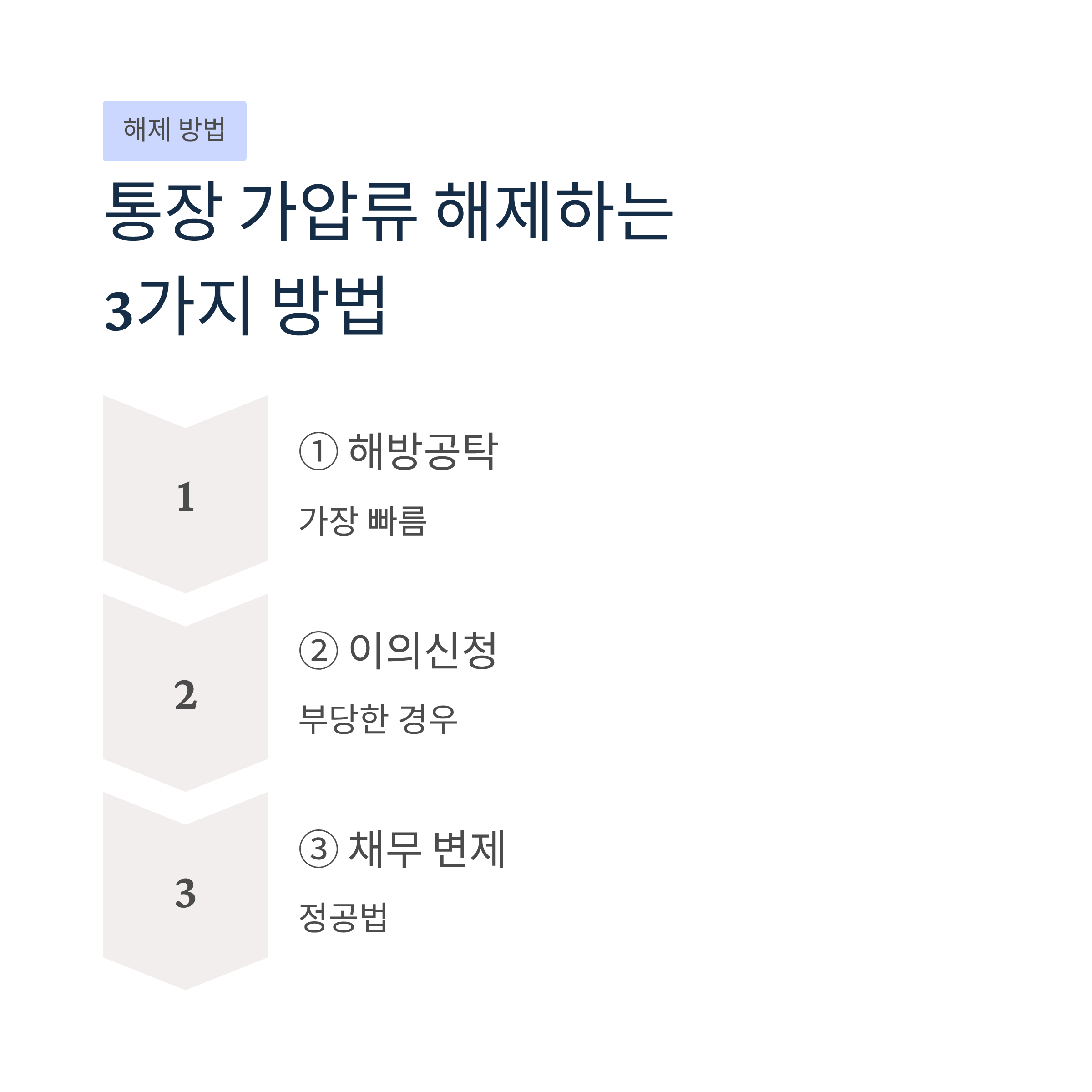가압류 통보를 받는 즉시 해야 할 일은 세 가지입니다. 첫째, 자동이체를 다른 계좌로 즉시 변경. 둘째, 가압류 사건번호와 채권자 정보 확인. 셋째, 해방공탁·이의신청·채무변제 중 가장 빠른 방법 선택.