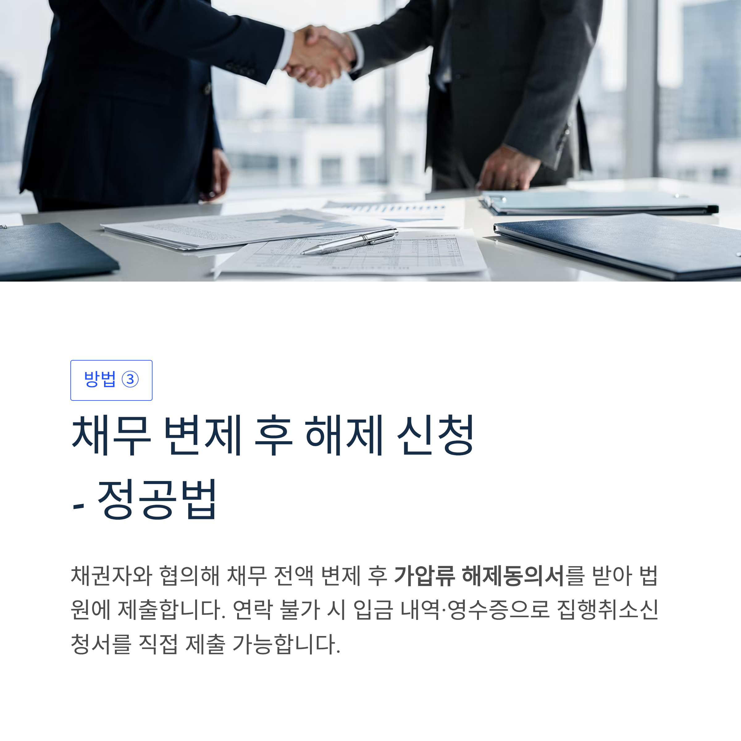 ⏱ 처리기간: 최소 1개월 이상 소요💰 채무 변제 후 해제 신청 — 채권자 동의·직접 신청